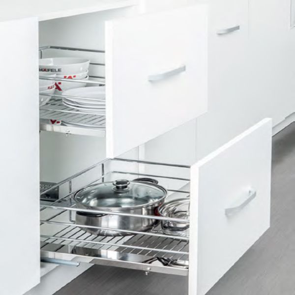 - Phiên bản : ray trượt và bộ rổ gắn với cánh tủ
