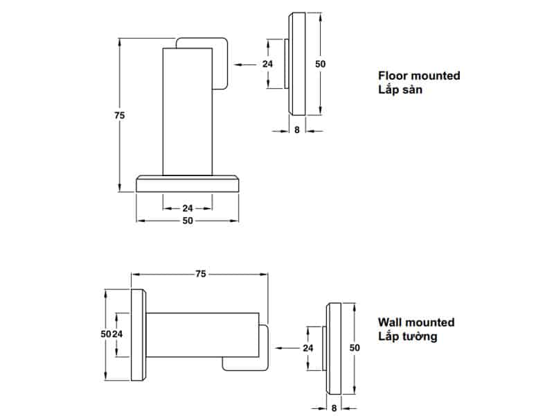 Thông tin sản phẩm chặn cửa nam châm Hafele 938.23.004