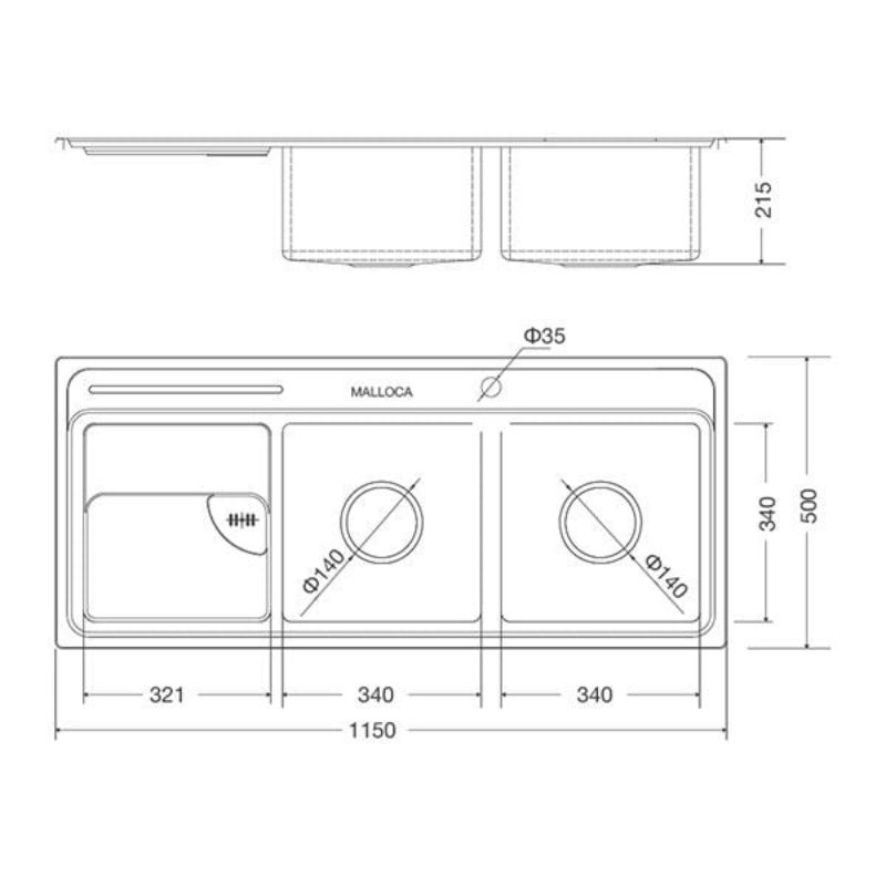 - Kích thước lớn, thoải mái sử dụng: Kích thước W1150 x D500 x H215mm của Malloca MS 8816 N cung cấp không gian rộng rãi, thoải mái cho việc rửa bát đĩa, rau củ và các dụng cụ nhà bếp khác, đáp ứng nhu cầu sử dụng của cả gia đình đông người.