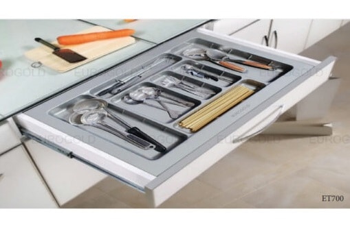 - Thiết kế chia làm nhiều ô nhỏ với các kích thước khác nhau cho từng loại dụng cụ riêng thông dụng trong nhà bếp như thìa, dĩa, dao, đũa…