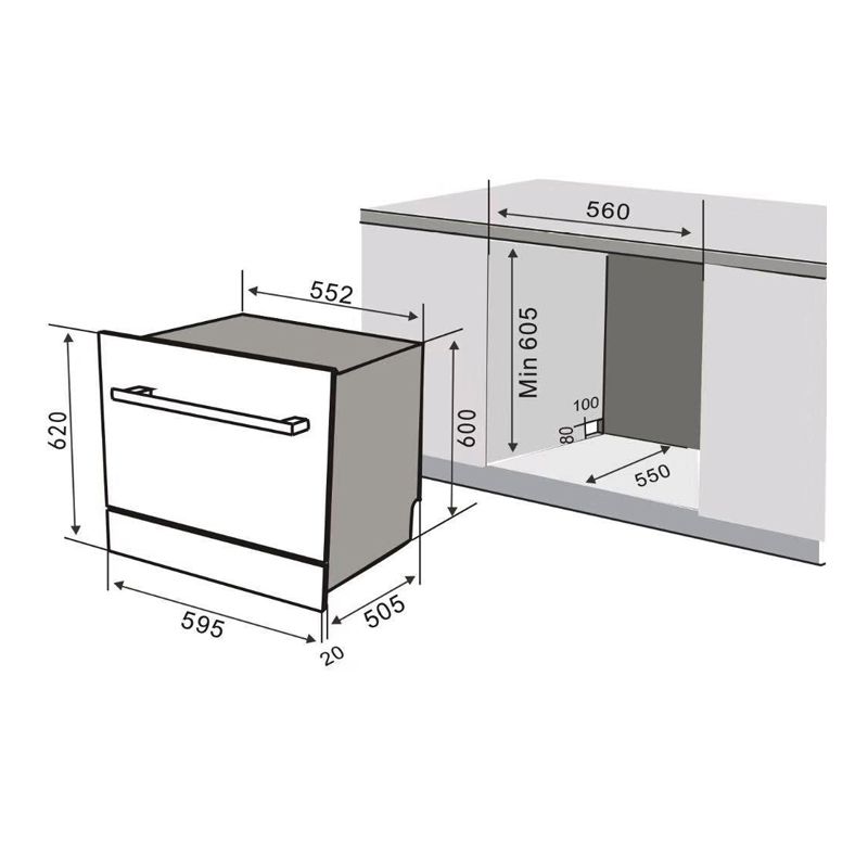 - Kích thước lắp âm: ≥ C595xR560xS535 mm