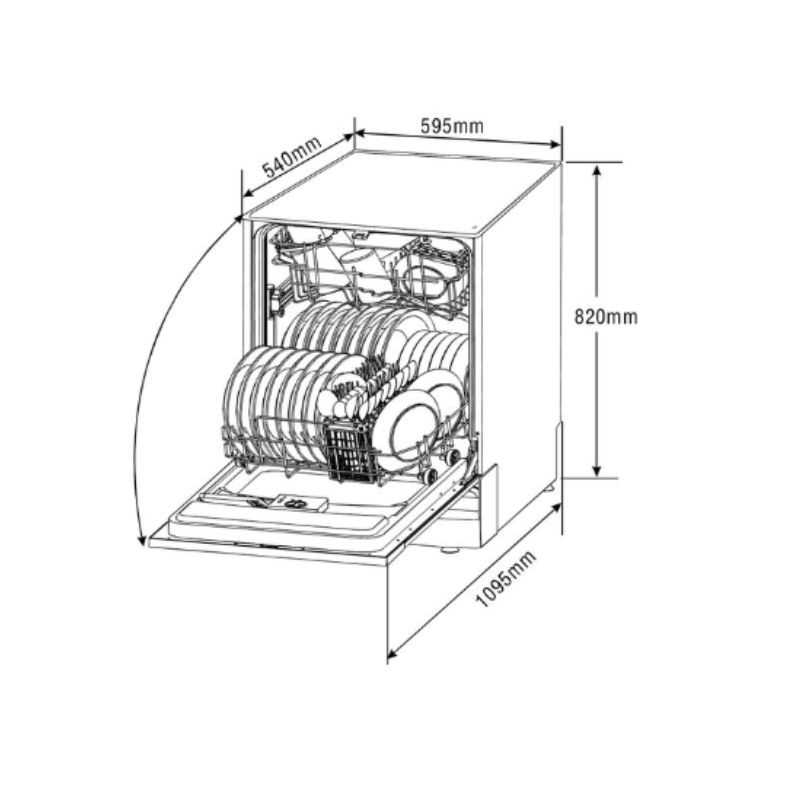 – Kích thước: W595 x H540 x D820mm